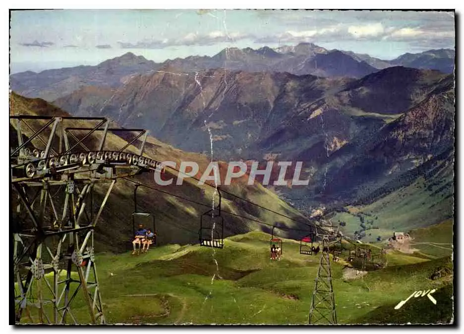 Cartes postales moderne Cauterets Arrivee Du Telesiege Du Monne Au loin le pic du Midi de Bigorre