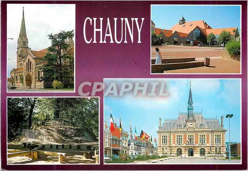 Cartes postales moderne Chauny (Aisne) l'Eglise Notre Dame le Forum les Promenades l'Hotel de Ville