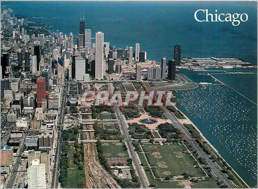Cartes postales moderne Chicago Aerial view of the City Grant Park and Monroe Harbor