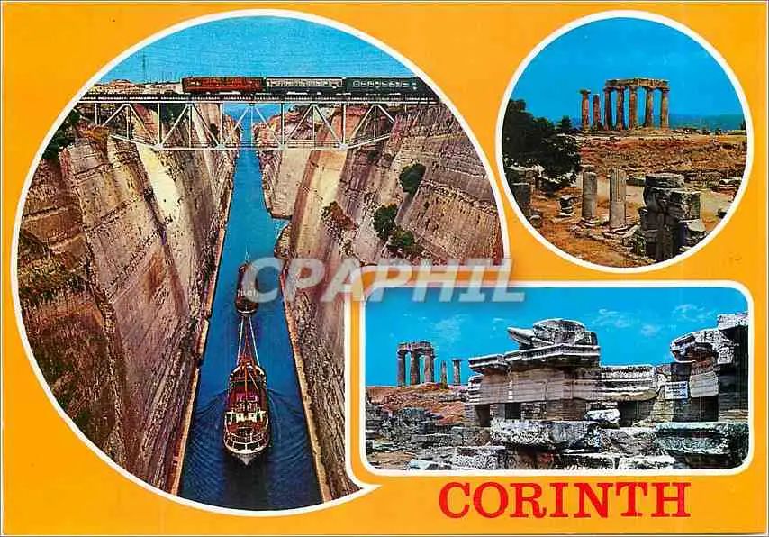 Cartes postales moderne Corinthe Bateaux Train