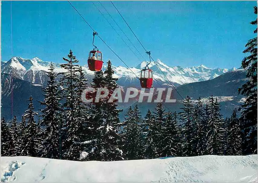 Cartes postales moderne Crans Montana alt m Le telecabine du Grand Signal et le Weisshorn Montana Vermala Vacances Ensol