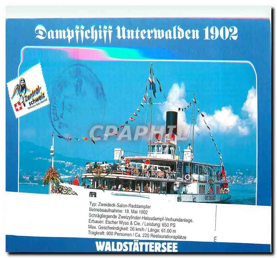 Cartes postales moderne Dampffichiff Unterwalden 1902 Typ Zweideck Salon Raddampfer