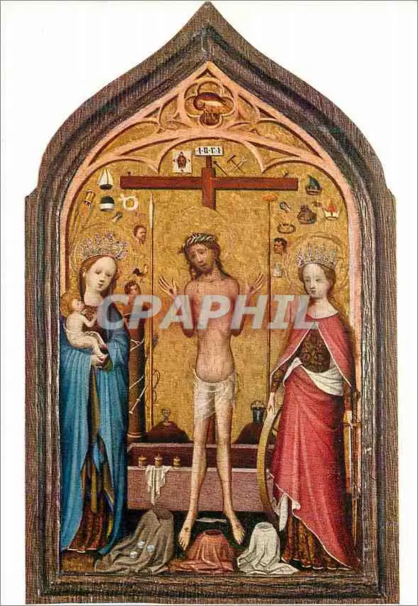 Cartes postales moderne De la Sainte Veronique (debut XVe s Begin XVe c) L'Homme de pitie entre la Vierge et sainte Cath