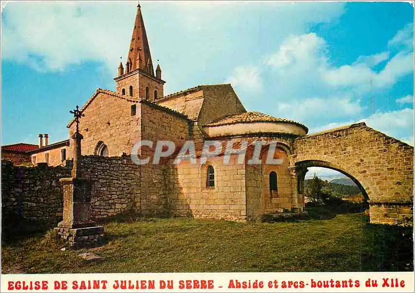 Cartes postales moderne Eglise de Saint Julien du Serre Abside et arcs boutants du XIIe