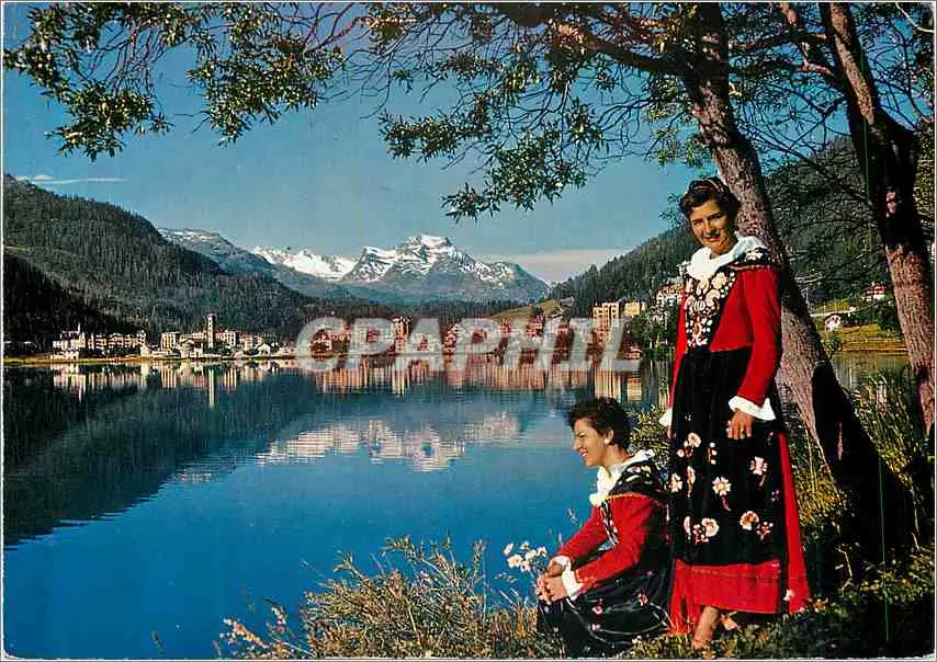 Cartes postales moderne Engadinerinnen mit St Moritz Bad Helvetia