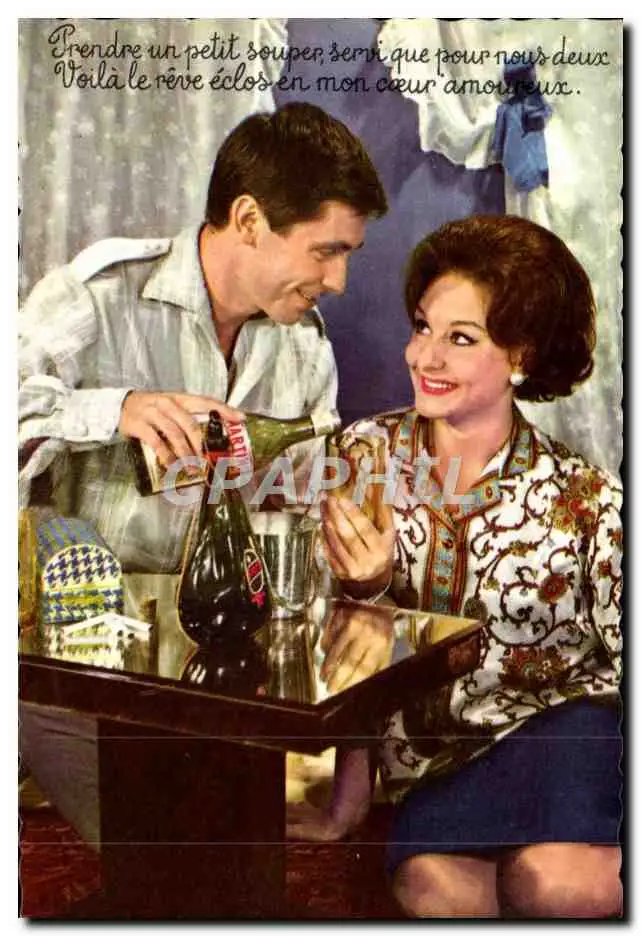 Cartes postales moderne Femme Prendre un petite souper Verre Publicite Martini Alcool