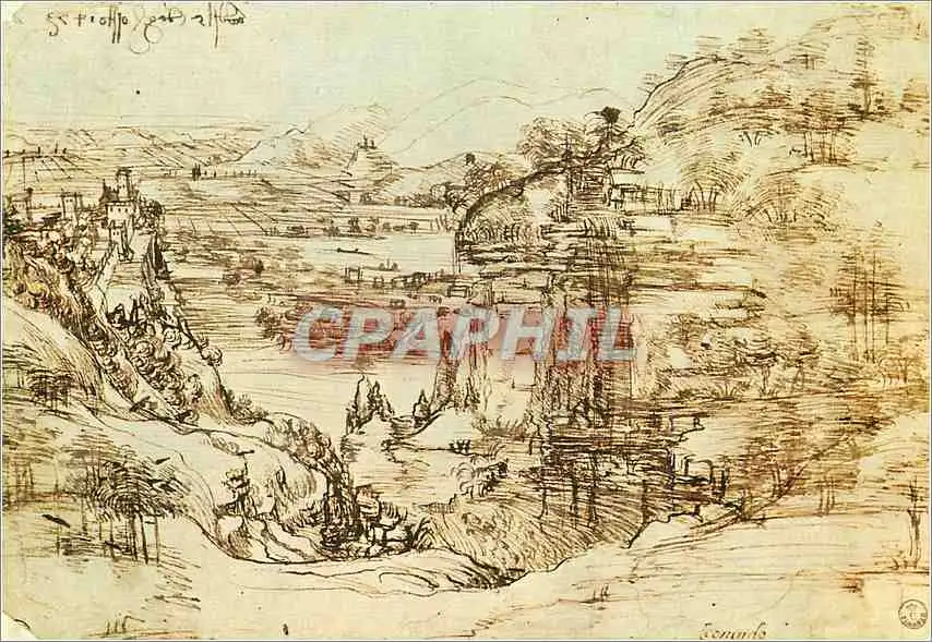 Cartes postales moderne Firenze Galerie Uffizi Disegni e Stampe Leonardo Paesaggio