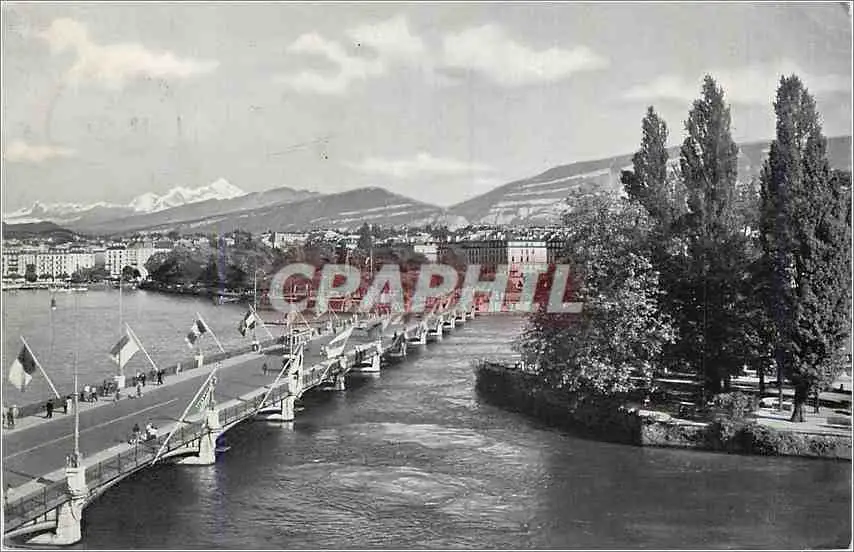 Cartes postales moderne Geneve Ile J J Rousseau Le Pont du Mont Blanc et le Mont Blanc (4810 m)