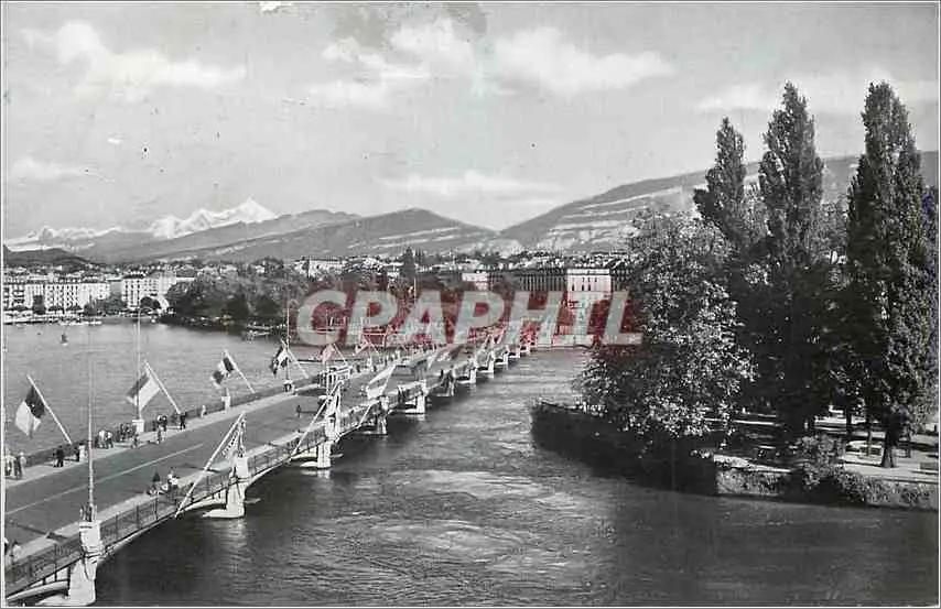 Cartes postales moderne Geneve Ile J J Rousseau Le Pont du Mont Blanc et le Mont Blanc (4810 m)