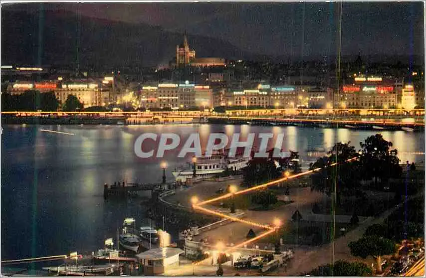 Cartes postales moderne Geneve La Rade Illuminee Bateau