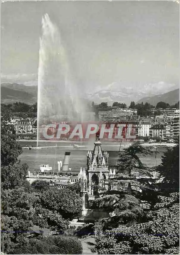 Cartes postales moderne Geneve Monument Brunswick et le Jet d'Eau (120m) Bateau