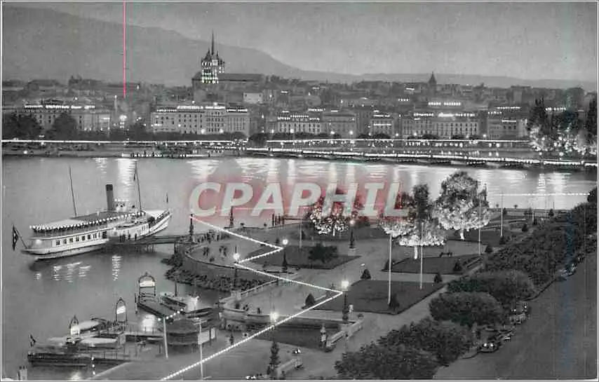Cartes postales moderne Geneve la Rade Illuminee Bateau