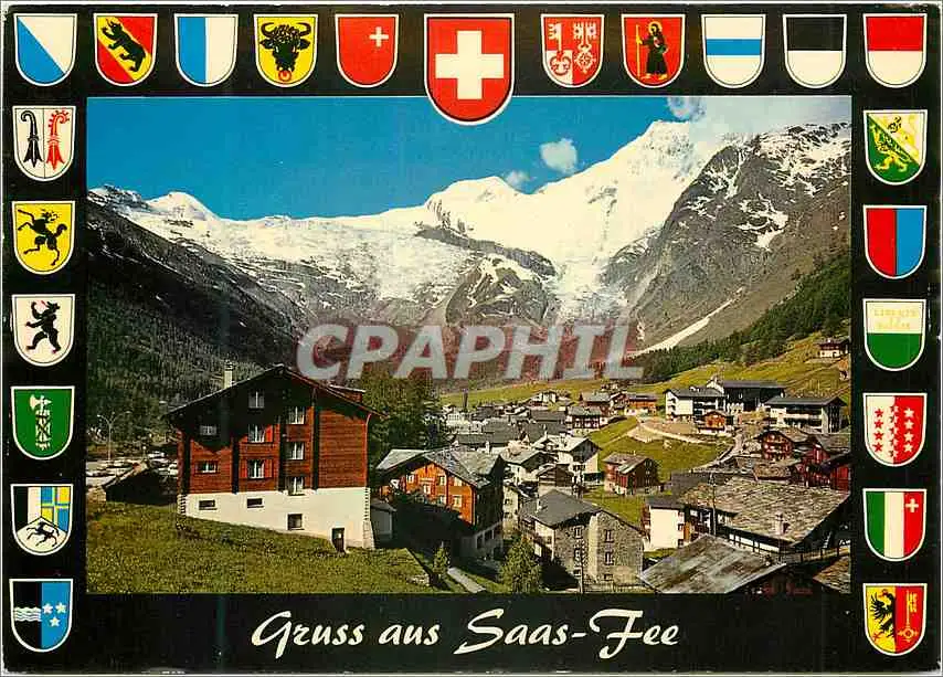Cartes postales moderne Gruss aus Saas Fee Saas Fee mit Allalinhorn Feegletscher Alphubel und Taschhorn