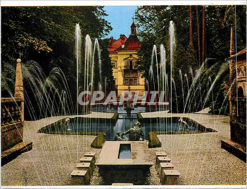 Cartes postales moderne Hellbrunn bei Salzburg Wasserkunste am Furstentisch dahinter Lustschloss