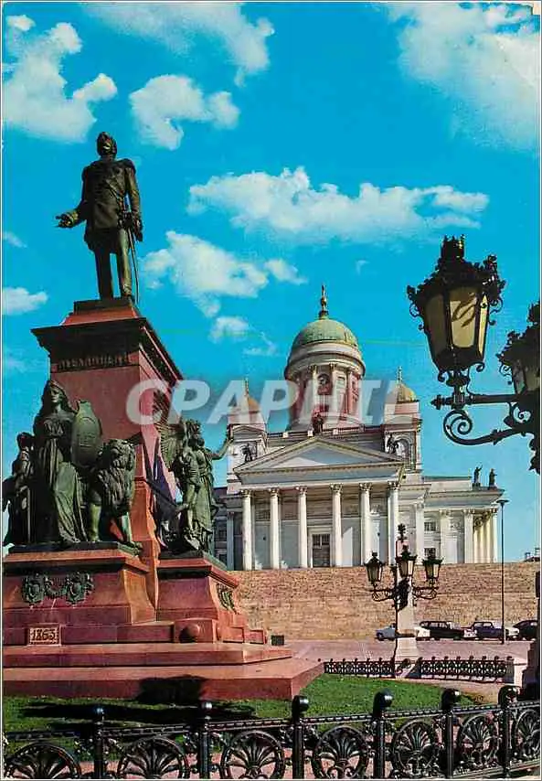 Cartes postales moderne Helsinki Helsingfors The Dom and the Statue of Alexander II