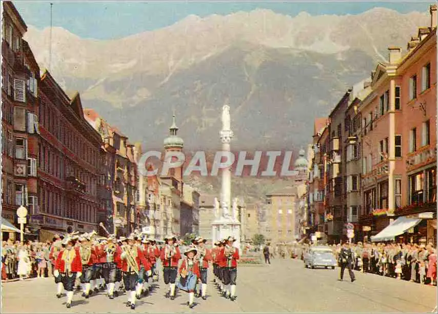 Cartes postales moderne Innsbruck Maria Theresien StraBe Mit Wiltener Stadtmusikkapelle Aufnahme Original Farbfilm