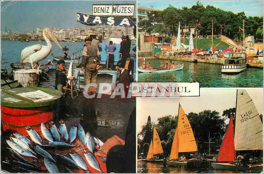 Cartes postales moderne Istanbul Turkey Fish Vandors and Sails Pelican Bateaux