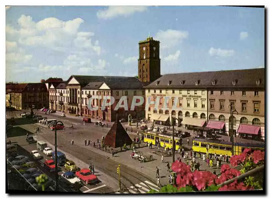Cartes postales moderne Karlsruhe Marktplatz mit Rathaus Tramway