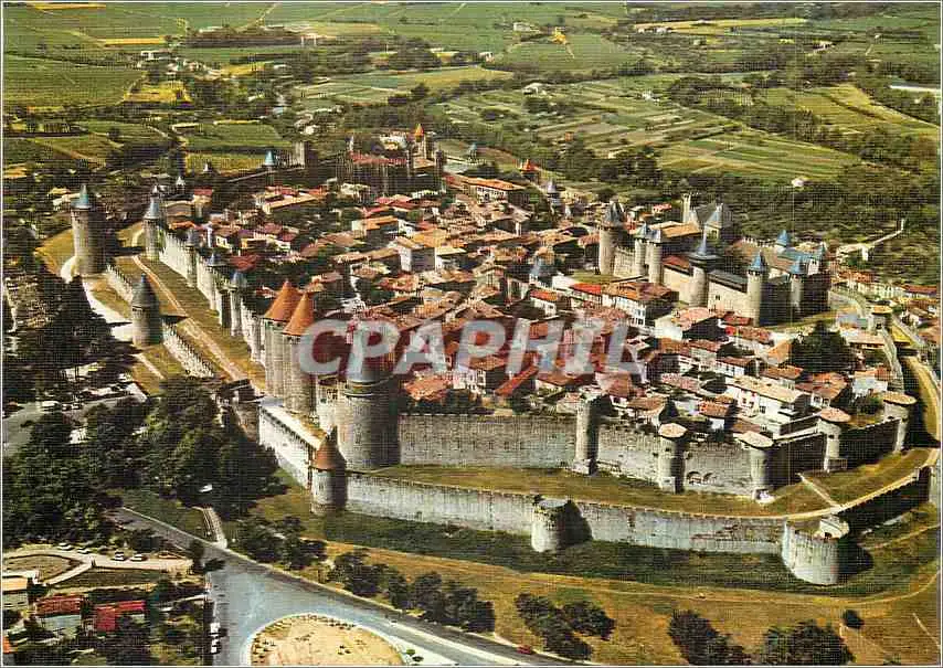 Cartes postales moderne La Cite de Carcassonne (Aude) Vue Generale par avion de la Cite Medievale (carte toilee)