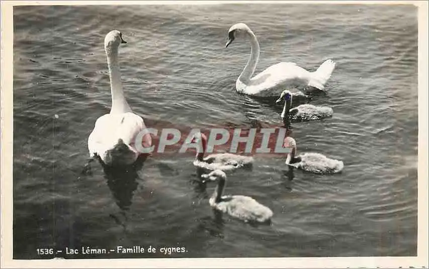 Cartes postales moderne Lac Leman Famille de Cygnes