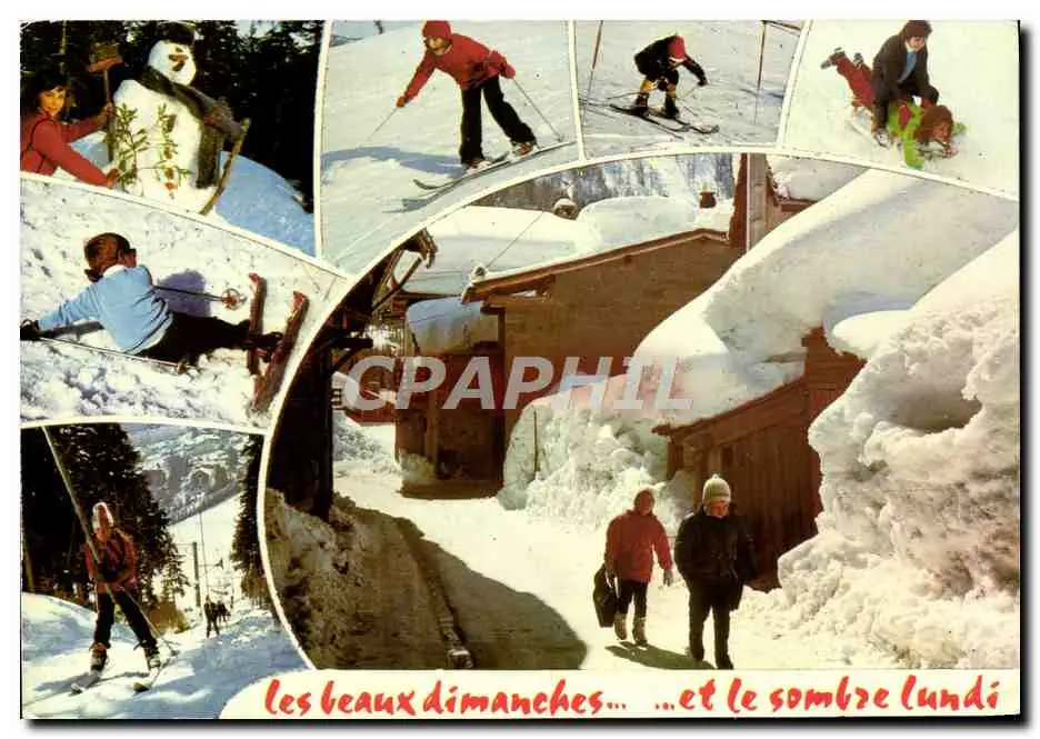 Cartes postales moderne Les beaux dimanches et le sombre lundi Enfants Ski