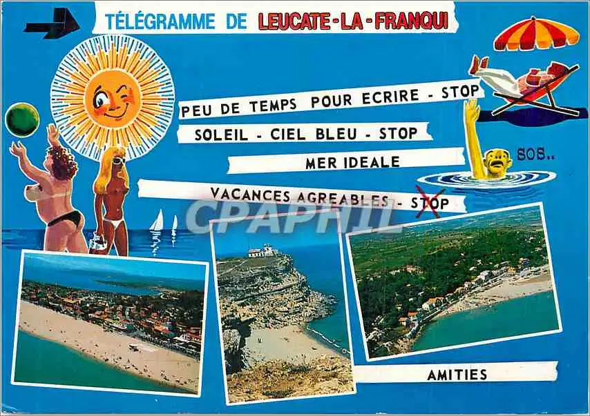 Cartes postales moderne Leucate la Franqui Peu de Temps pour Ecrire Stop Soleil Ciel bleu Mer Ideal Vacances Agreables