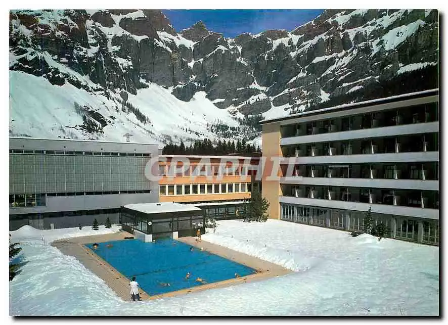 Cartes postales moderne Leukerbad Loeche les Bains Rheums Klinik mit Thermal Aussenbad Gemmipass