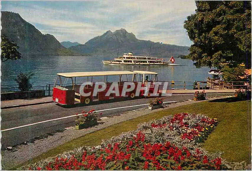 Cartes postales moderne Lido Bus Kurort Weggis mit Pilatus Train Bateau