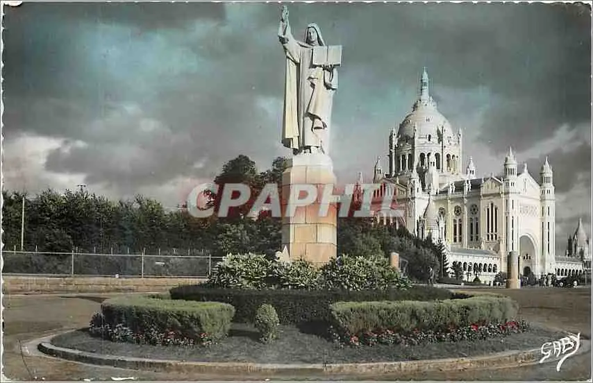 Cartes postales moderne Lisieux (calvados) statue de sainte therese et la basilique