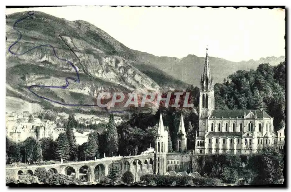 Cartes postales moderne Lourdes La Basilique Vue De Cote Et Les Pyrenees