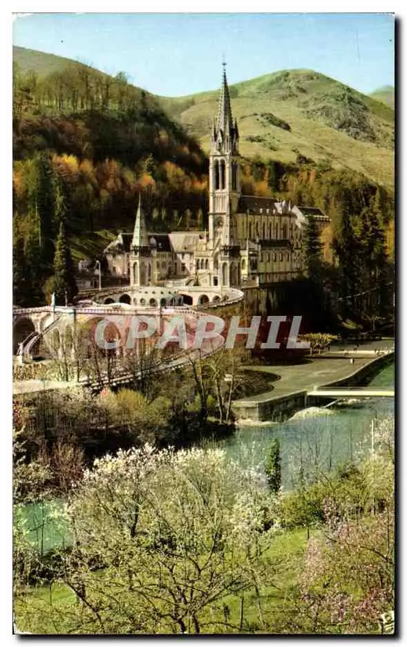 Cartes postales moderne Lourdes La Basilique et le Gave The Basilica and the Gave