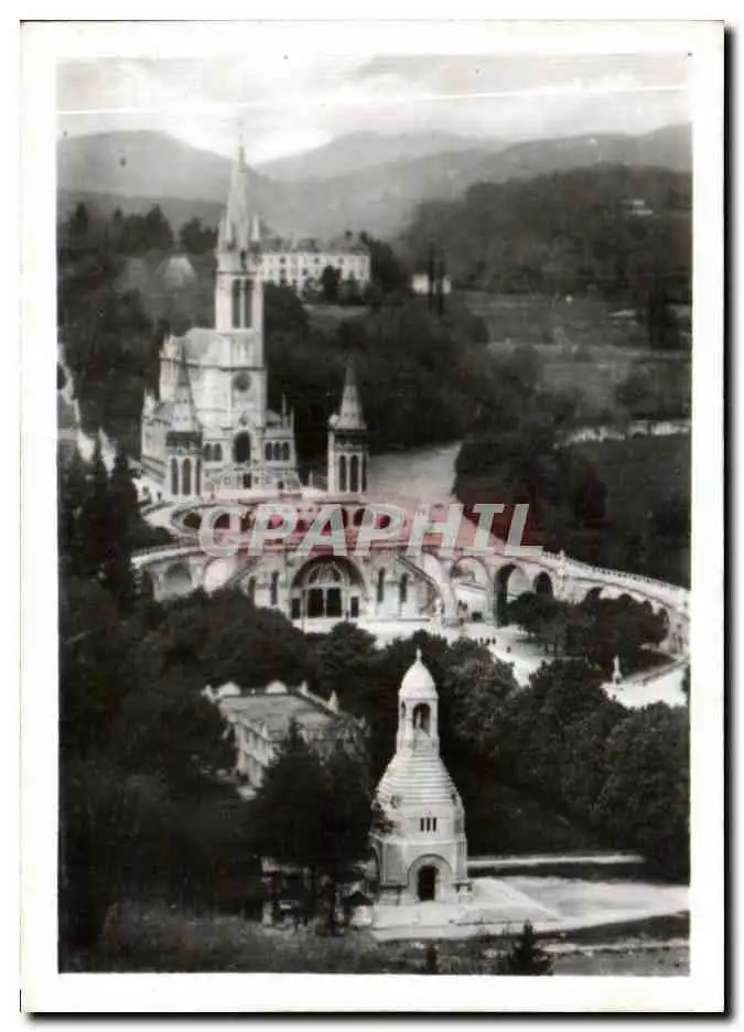 Cartes postales moderne Lourdes la basilique le monument interallie vue plongeante