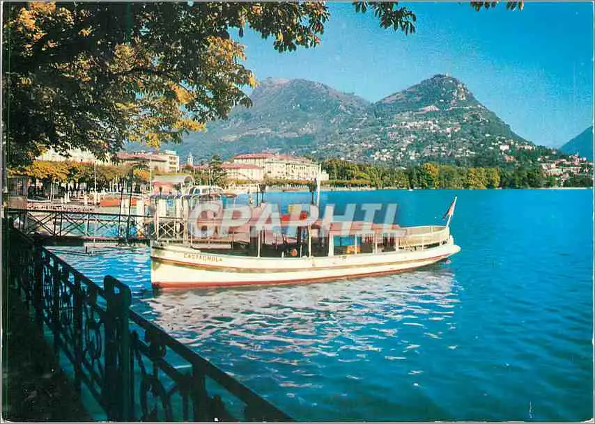 Cartes postales moderne Lugano Monte Bre la Riva Bateau