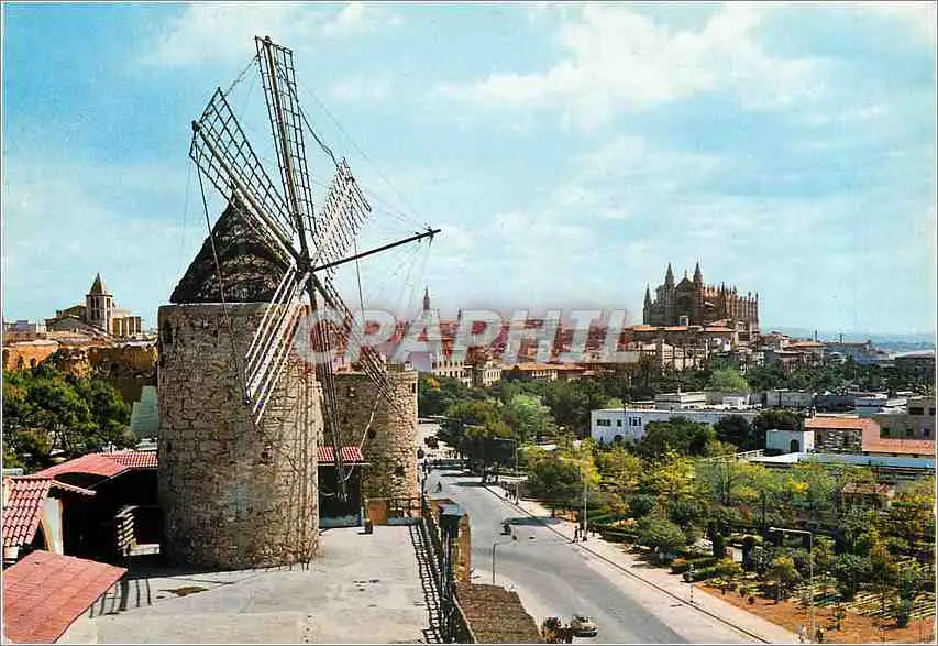 Cartes postales moderne Mallorca Palma le Moulin au Fond la Cathedrale