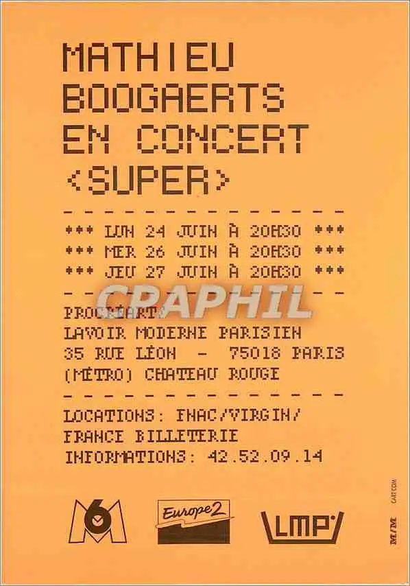 Cartes postales moderne Mathieu Boogaerts en concert super Paris FNAC Virgin