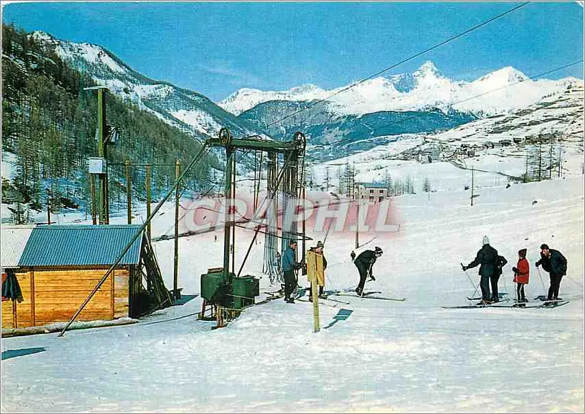 Cartes postales moderne Molines en Queyras (Hautes Alpes) Altitude 1800 metres Depart du teleski Dans le fond Pic de Roc