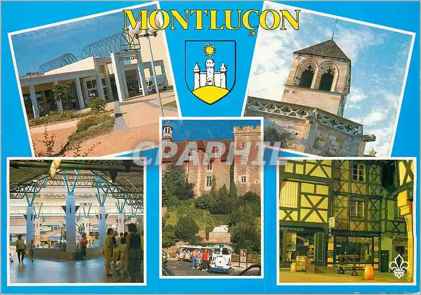 Cartes postales moderne Montlucon (Allier) Centre Commercial Saint Jacques Eglise Sainte Madeleine Train
