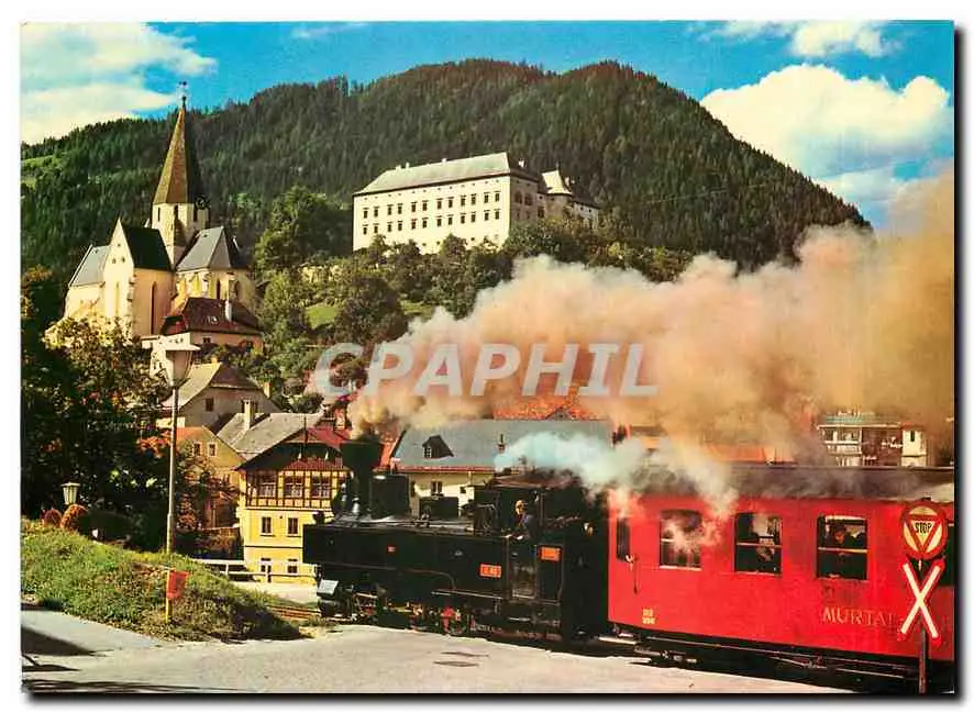 Cartes postales moderne Murtalbahn bei Murau Lok U40 mit Barwagen in voller Fahrt