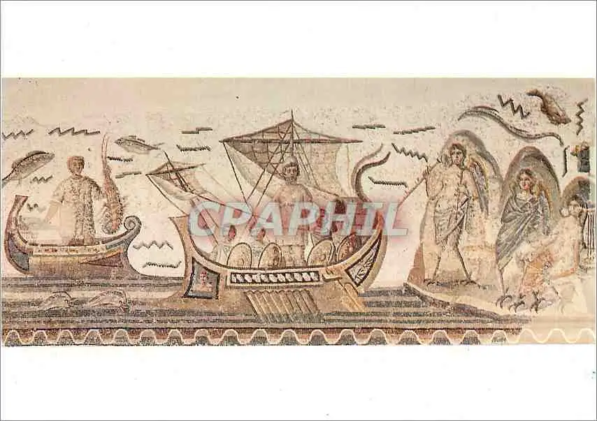 Cartes postales moderne Musee du Bardo Mosaique Ulysse et les Sirenes Exposition de Carthage a Kairouan Paris 1982 83