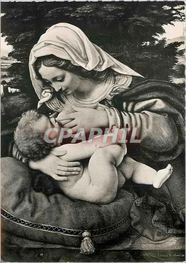 Cartes postales moderne Musee du Louvre La Vierge au Coussin Vert par Andre de Solario Publicite Scillitrine Convalbain