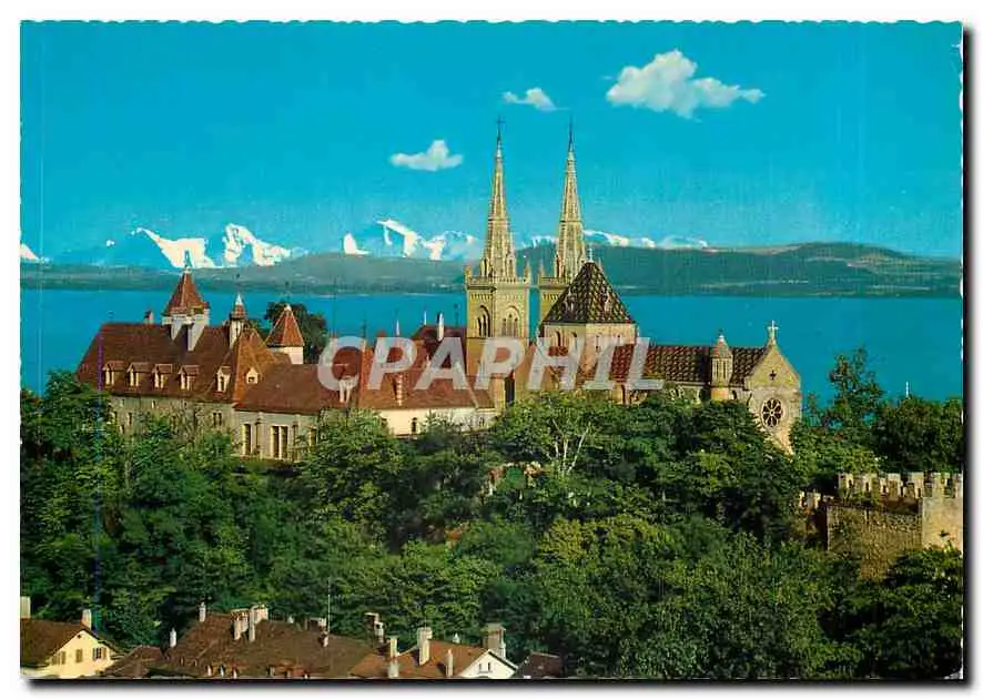 Cartes postales moderne Neuchatel La Collegiale le chateau et les Alpes