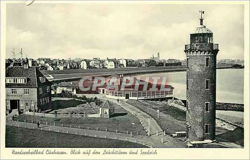 Cartes postales moderne Nordseeheilbad Cuxhaven Blick auf den Leuchtturm und Seedeich