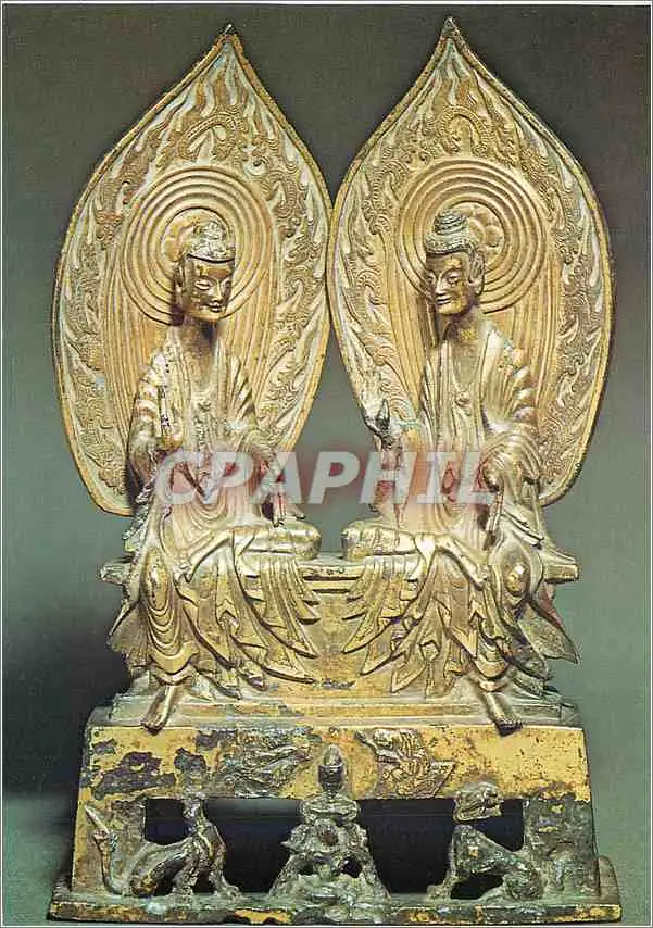 Cartes postales moderne Paris Musee Guimet Conversation Mystique entre deux Bouddhas Chine Epoque Wei du Nord Bronze Dor