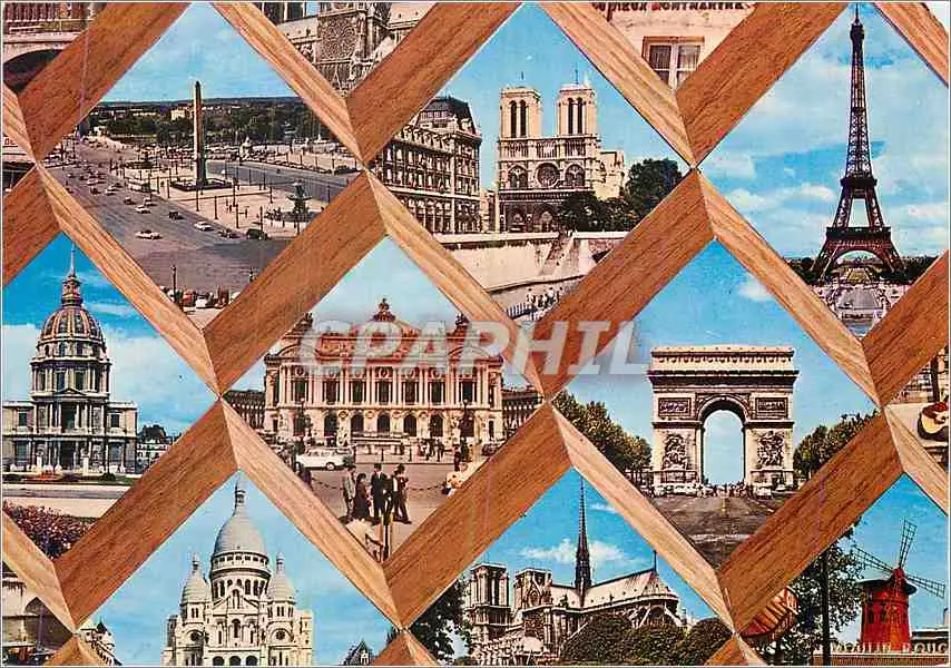 Cartes postales moderne Paris Tour Eiffel Moulin Rouge Notre Dame Arc de Triomphe