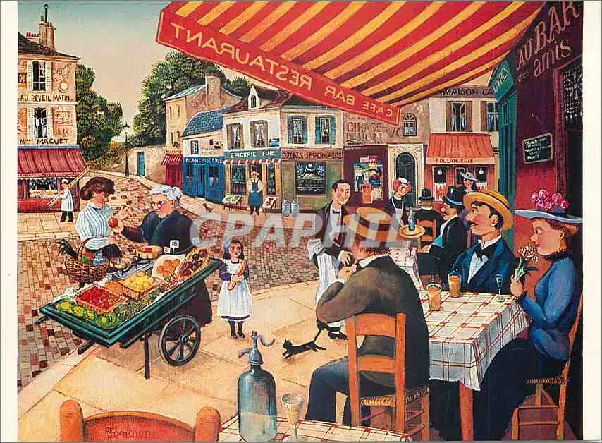 Cartes postales moderne Peintre Naive de Fontaine A la Terrasse