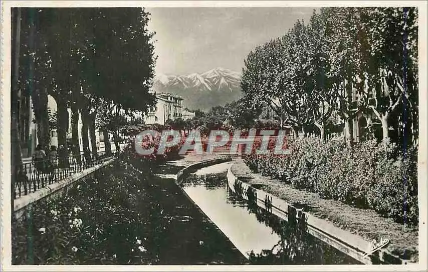 Cartes postales moderne Perpignan Les Quais Fleurs de la Basse au fond le Canigou