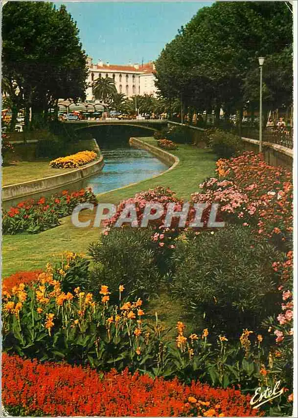 Cartes postales moderne Perpignan Pyrenees Orientales Les rives fleuries de la Basse et a l'arriere plan la place Arago