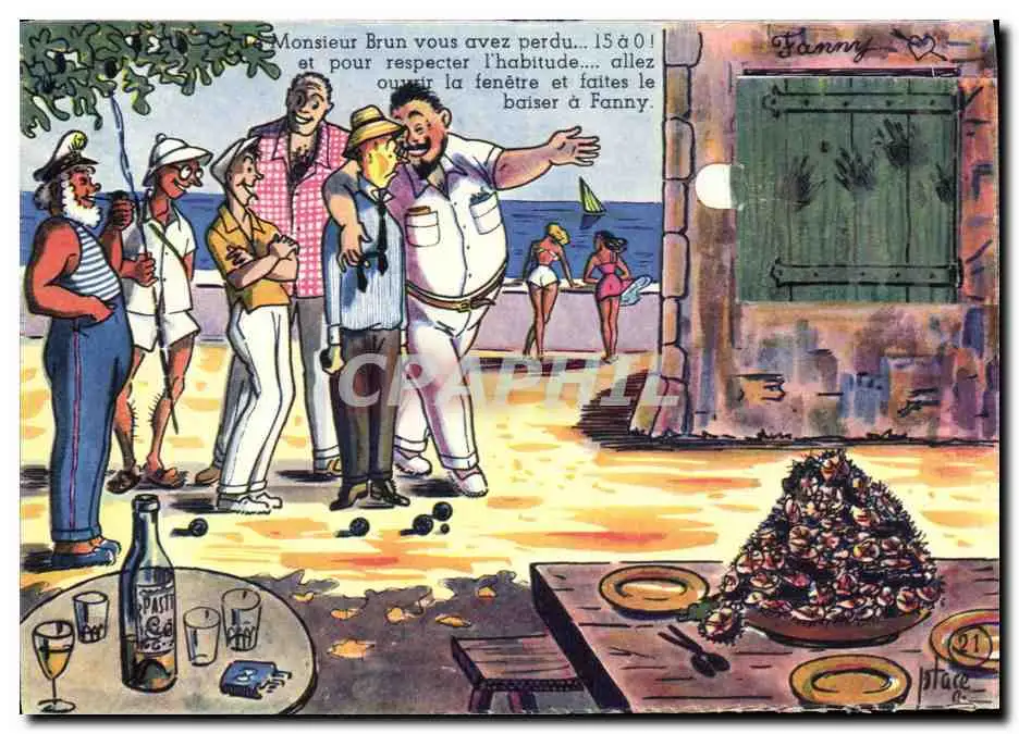 Cartes postales moderne Petanque Fanny Huitres Pastis