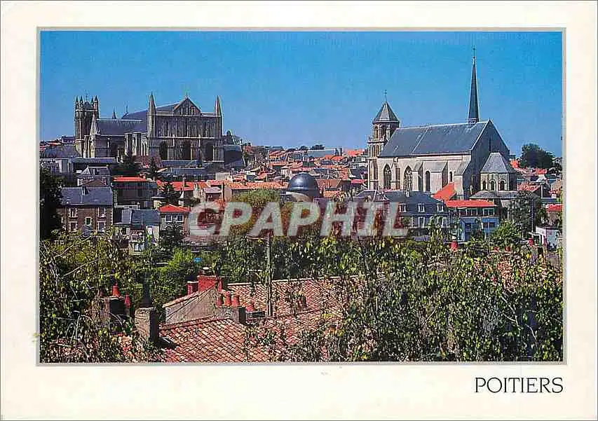 Cartes postales moderne Poitiers (Vienne) Vue d'Ensemble L'Eglise Sainte Radegonde A l'Arriere Plan la Cathedrale Saint