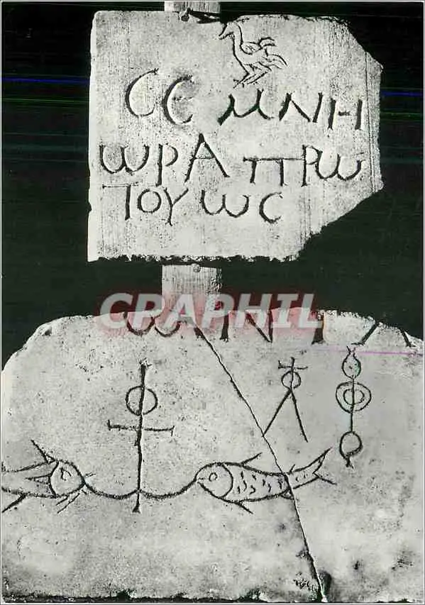 Cartes postales moderne Roma via Naoleone III Catacombes de Ste Domitilla Epitaphe d'Antonia avec ancres et Poissons St